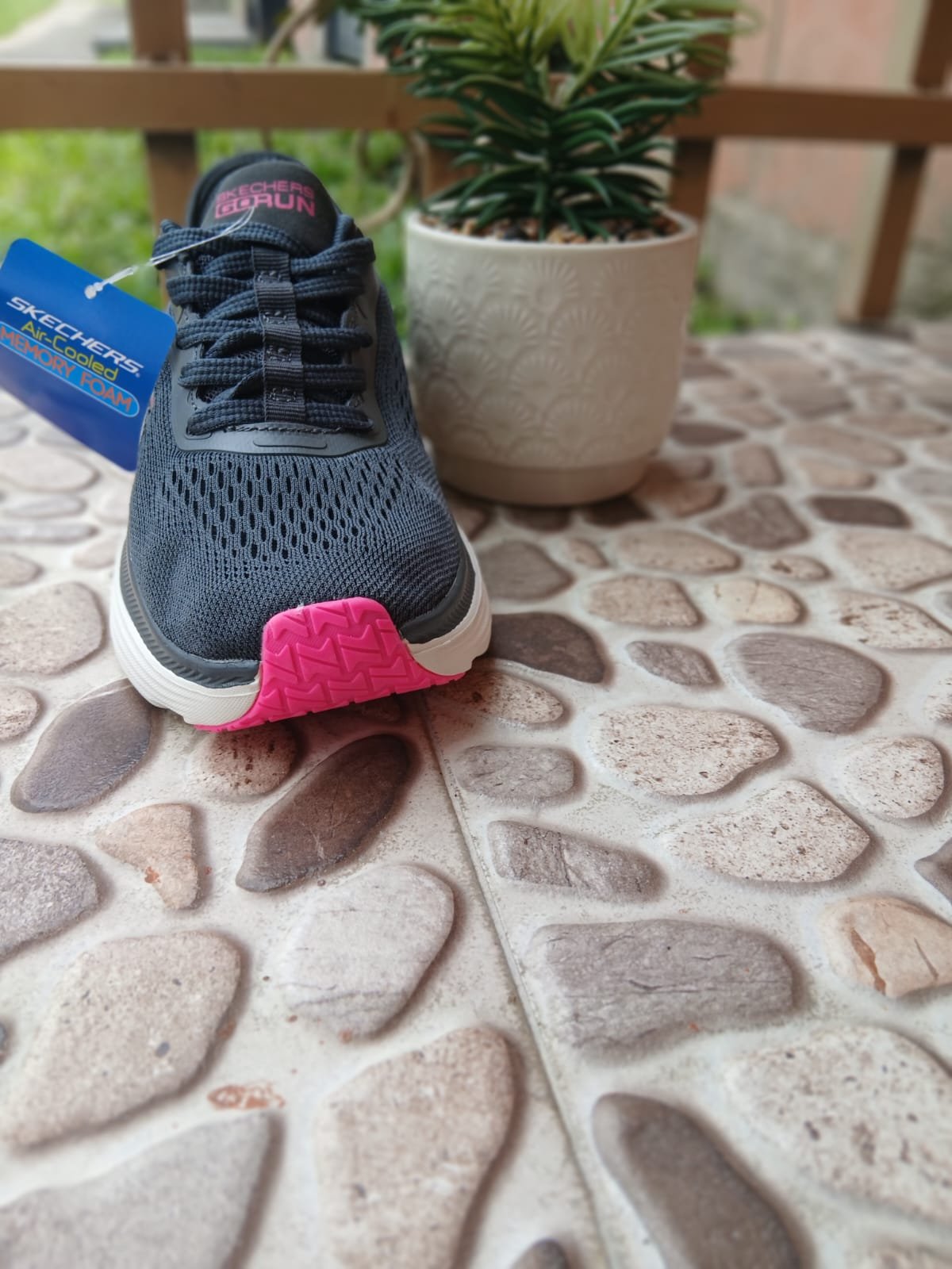 Incorporan una media suela con amortiguación ULTRA GO® y un diseño Max Cushioning para una comodidad y soporte excepcionales, a su vez llevan una plantilla Skechers Air-Cooled Memory Foam® con infusión de cobre para mayor confort, Presentado una parte superior de malla técnica Stretch Fit® con detalles de líneas de impresión háptica, lo que aporta versatilidad y transpirabilidad