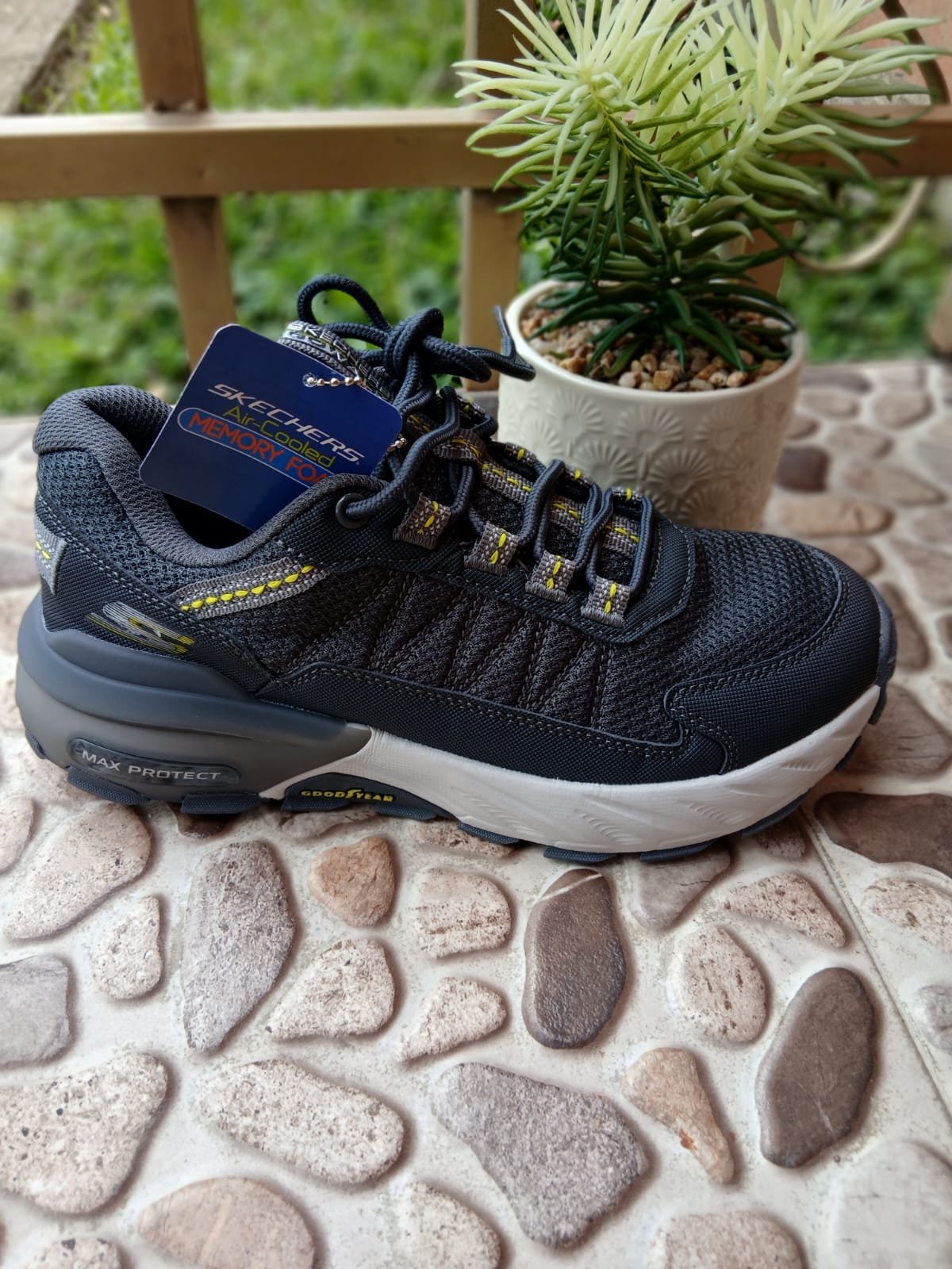 Estas son las zapatillas Skechers Max Protect con suela Goodyear para hombre, estas zapatillas están diseñadas para ofrecer comodidad y tracción duradera en diversos terrenos. Con Suela Goodyear Performance Fabricada con caucho de la marca Goodyear, proporcionan tracción avanzada, estabilidad y durabilidad, ideal para superficies difíciles.
